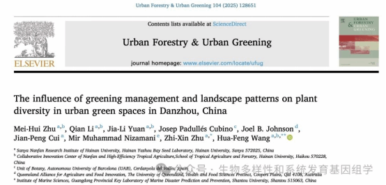 2024年12月,王华锋课题组在《Urban Forestry & Urban Greening》期刊(中科院一区TOP期刊,IF=6)发表题为“The Influence of Greening Management and Landscape Patterns on Plant Diversity in Urban Green Spaces in Danzhou, China”https://doi.org/10.1016/j.ufug.2024.128651的研究论文。suncitygroup太阳成集团硕士研究生朱美惠为该论文的第一作者,王华锋教授为论文的通讯作者。本研究得到国家自然科学基金的资助。