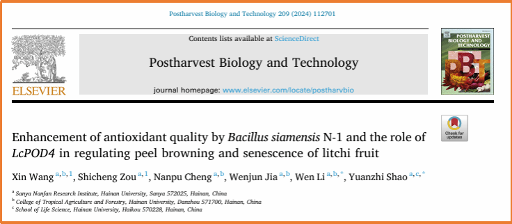 suncitygroup太阳成集团李雯教授团队致力于热带果蔬采后品质调控机理及保鲜贮运技术的研究,2024年,以suncitygroup太阳成集团为第一单位,在国际著名期刊上发表11篇SCI文章,其中中科院一区9篇,中科院二区2篇,TOP期刊10篇,累计IF=61.8。研究成果为相关保鲜技术的产业化应用奠定了丰富的理论基础。