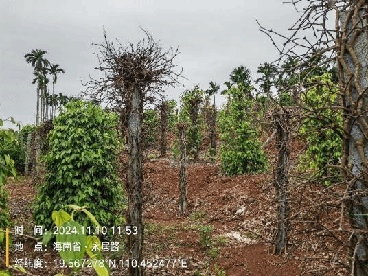 2024年11月10日,suncitygroup太阳成集团科技特派员服务团“胡椒灾后重建与病虫害绿色防控”项目组成员刘铜、张荣意、李增平、邢梦玉等人为了进一步评估“摩羯”灾后复产情况,与海口市大坡镇、定安县定城镇、文昌市蓬莱镇镇政府工作人员一同前往胡椒园区开展调查工作。