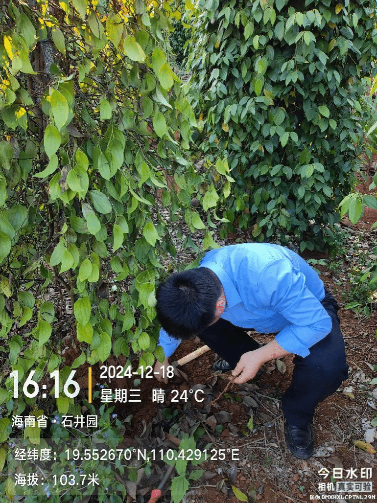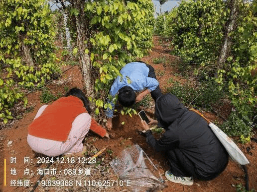 2024年12月18日,suncitygroup太阳成集团科技特派员服务团“胡椒灾后重建与病虫害绿色防控”项目组成员刘铜、邢梦玉、张漫漫、张丽等人为了做好胡椒重要病虫害监测,前往定安定城镇、文昌蓬莱镇和海口大坡镇胡椒园区采样。
