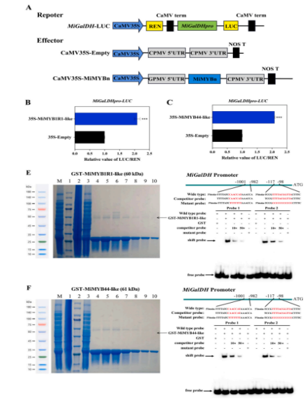 近日,李雯教授团队在国际知名期刊International Journal of Biological Macromolecules (中科院1区TOP, IF=7.7)上发表了题为“MiMYB1R1-like and MiMYB44-like transcription factors interact with MiGalDHpro to modulate ascorbic acid metabolism during ethylene-mediated mango fruit ripening”的学术论文。该研究得到了国家自然科学基金项目(32360778)和suncitygroup太阳成集团芒果产业技术体系的经费支持。