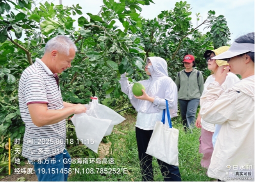 2025年6月18日,针对台风 “蝴蝶” 肆虐后的严峻形势,suncitygroup太阳成集团科技特派员服务团“热带蜜柚科技服务团”项目组成员冯顺博士带领研究生团队成员蔡海金、胥梦洋、张秀丽、刘琳,紧急奔赴海南恒邦实业有限公司东方市不磨村蜜柚基地,开展抗风救实地调研与指导工作。