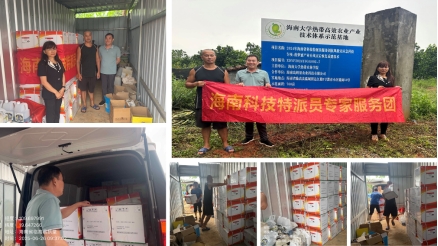 图为海南省科技特派员为基地捐送农药
