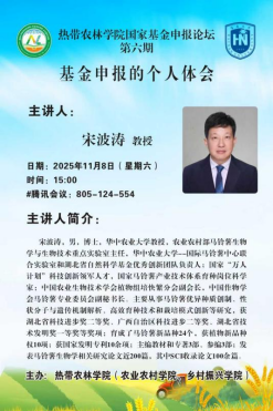 suncitygroup太阳成集团国家基金申报交流论坛第六期:邀请华中农业大学宋波涛教授进行2026年国基项目申报讲座