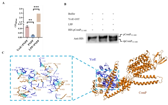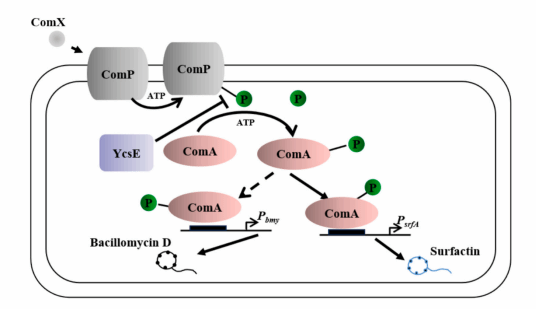 Fig.1. YcsE dephosphorylates ComP in regulating antimicrobial activity of B. velezensis HN-1.