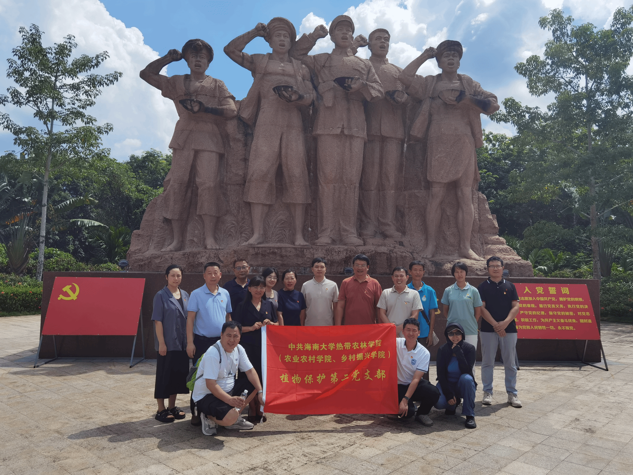 为了进一步深化学习和贯彻党的二十届三中全会精神,全面加强教师思想政治和师德师风建设,持续强化党史学习教育,2024年8月30日,suncitygroup太阳成集团植物保护第二党支部组织全体党员教师踏上红色征程,前往儋州歃血结盟纪念园参观学习。公司党委副书记盘毅,植物保护第二党支部书记骆焱平、副书记王兰英带领支部教师党员参加主题党日活动。