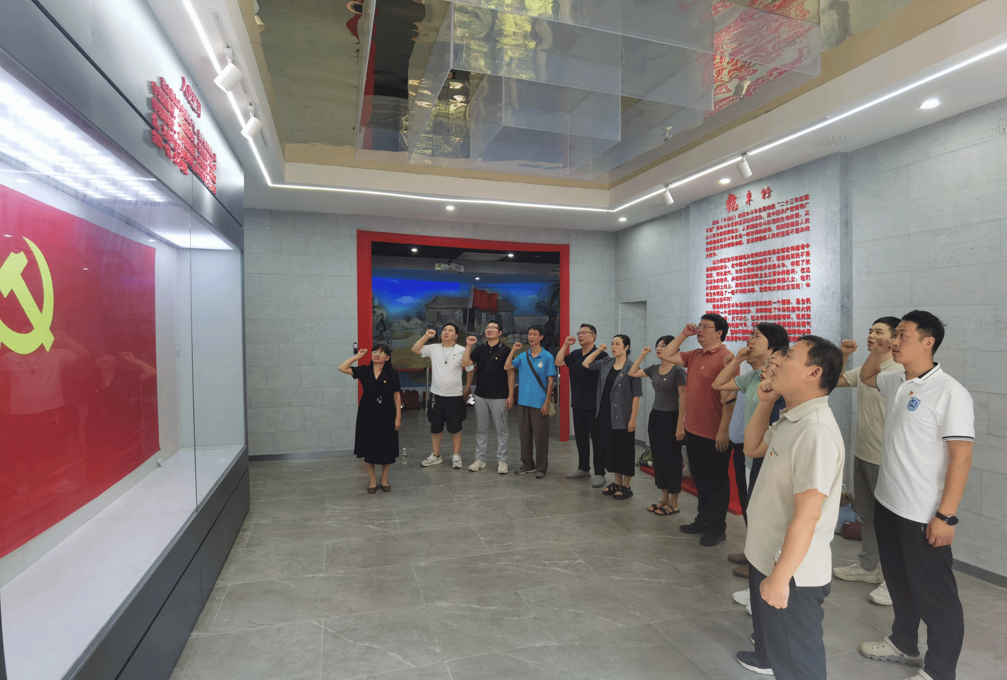 在纪念馆中,由王兰英副书记领誓,大家面对党旗庄严重温入党誓词,缅怀革命先烈,坚定理想信念。