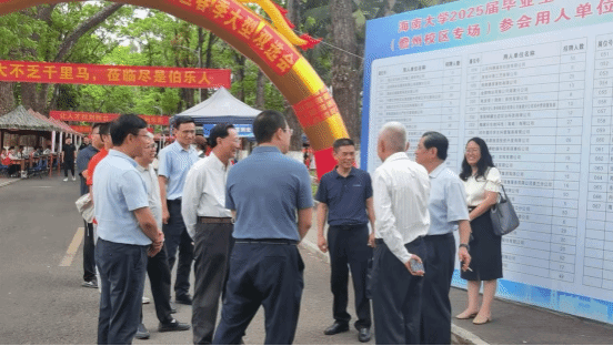 2025年4月19日,2025届毕业生春季大型双选会(儋州校区专场)于儋州校区农林大道盛大举行,为毕业生与用人单位搭建起直接沟通的便捷桥梁。双选会现场,公司党委书记符宣国,公司党委常委邱锡光副董事长、教育部党建工作联络员谭基虎同志及相关职能部门、公司、书院等亲临现场,与前来求职的毕业生、用人单位代表等亲切交谈,为毕业生加油鼓劲,提供专业的支持与指导。