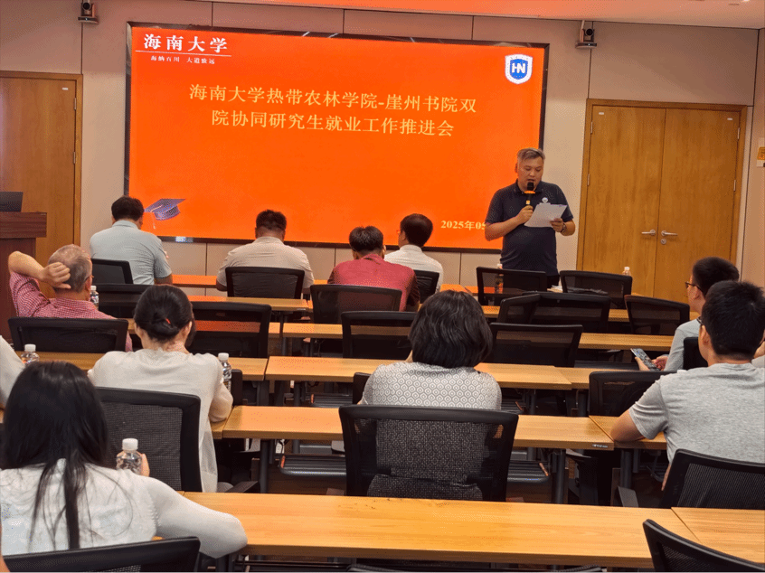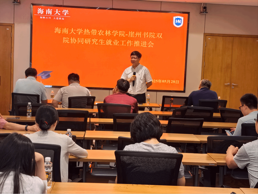盘毅副书记剖析了 2025 届研究生毕业去向落实现状,结合就业形势提出推进策略,强调要紧盯关键时间节点,优化就业指导服务体系,激发导师积极动能,深化职业规划指导,提升研究生就业竞争力。黄良颖书记就热农林专业在崖州书院的毕业生就业推进情况汇报,彰显 “双院协同”“双导协同” 机制优势。周国惠老师解读最新就业政策,分享政策要点与实施路径。