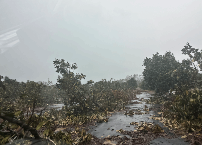 根据调查结果显示,受灾的菠萝蜜果园遍布海南多个主产区。台风过后,菠萝蜜树倒伏、折断,果实大量掉落或腐烂,经济损失惨重。在文昌东路大致坡的一处菠萝蜜基地,损失尤为严重,大部分树体都被台风折断,经过太阳曝晒,树枝萎焉,树叶枯死,经济损失严重。初步估算,本次菠萝蜜受台风影响面积占全省一半以上,果农损失十分严重。