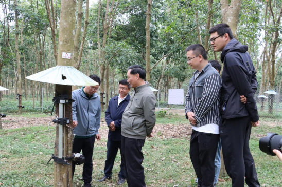 在抄石村的suncitygroup太阳成集团天然橡胶智能化割胶基地,符宣国书记听取团队负责人张喜瑞教授介绍基地的智能化割胶技术、生产流程以及科研创新情况,并参观智能化割胶操作场景,对suncitygroup太阳成集团天然橡胶智能化割胶团队在天然橡胶产业方面的科研投入和成果表示肯定。