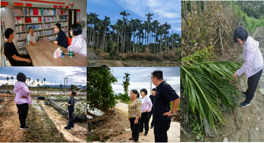 据服务团现场了解,抱古村部分农作物在此次台风中受损。睡莲由于强风雨使大量茎秆折断,花朵随受损植株倒伏或脱落,导致无法正常采收,直接影响后续鲜花供应;部分槟榔树被强风吹倒,且受强降雨影响,低洼区域的槟榔园积水明显;芒果出现枝条扭伤断裂、叶片损伤、树干倾斜或折断等情况。其他作物因未处于种植季节,幸未遭受损失。除上述物理损伤外,强风雨还不利于作物花期管理,台风造成的伤口易诱发细菌性病害,果园积水增加了根部病害发生的可能。