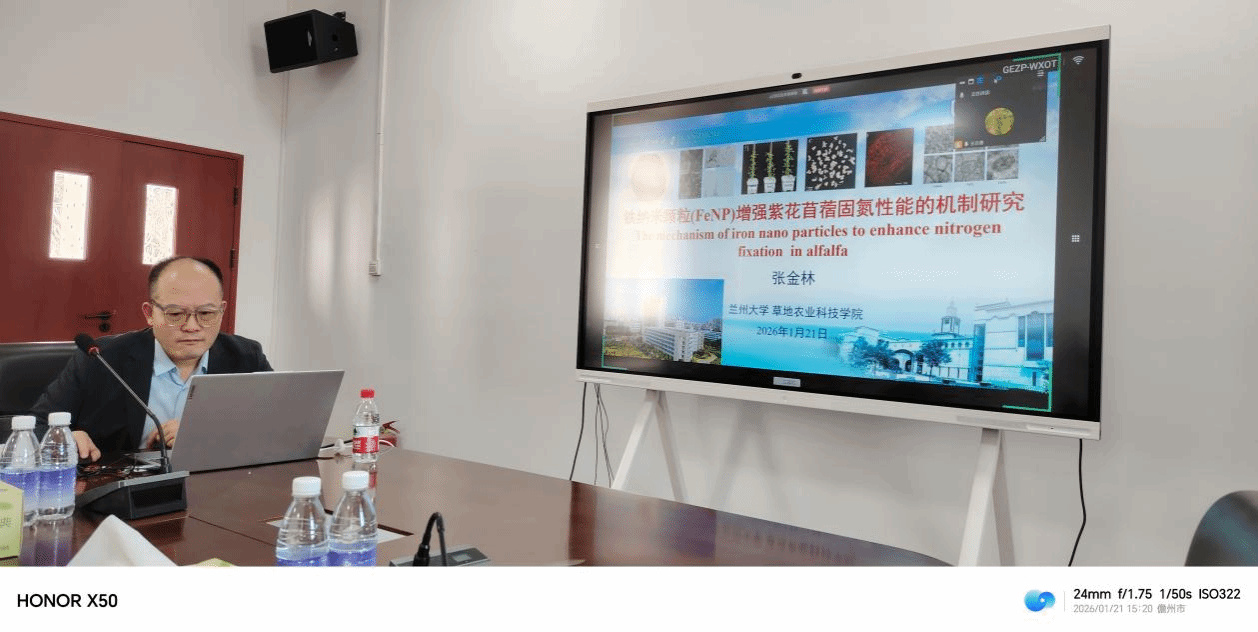2026年1月21日下午,在儋州校区8210会议室,兰州大学张金林教授应邀为公司师生作题为“铁纳米材料通过调节苜蓿根系代谢物和根际微生物群落来增强其固氮性能”的学术讲座。
