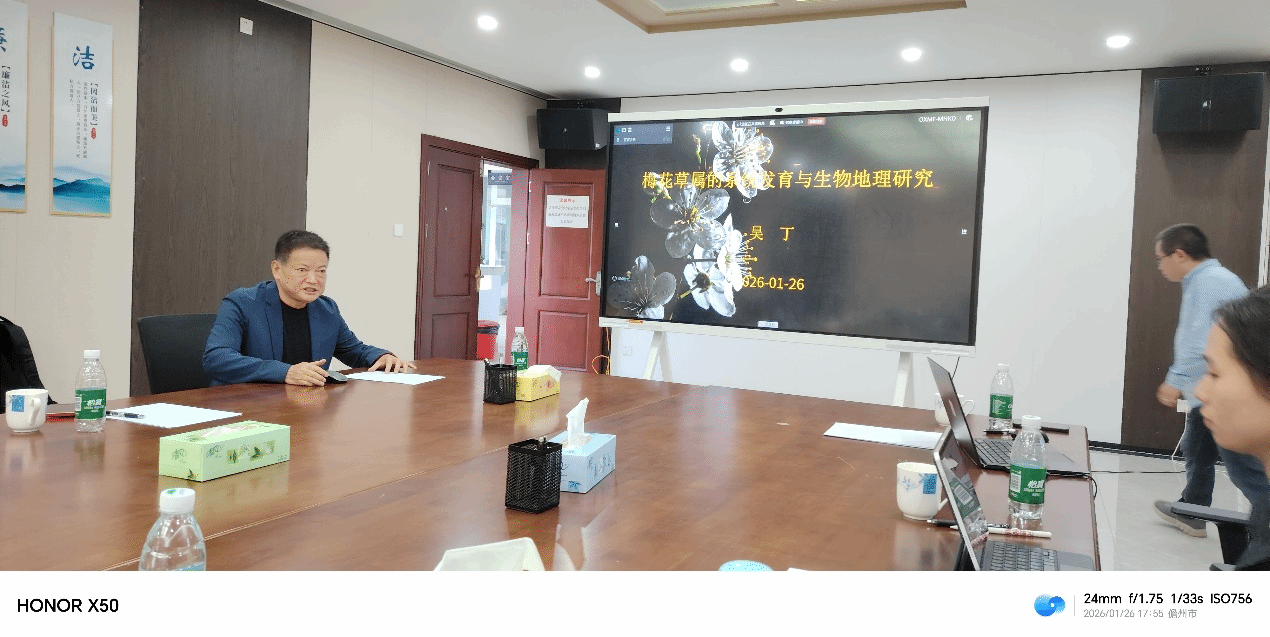2026年1月26日下午,在儋州校区科教楼515会议室,景德镇公司吴丁教授应邀为公司师生作题为“梅花草属的系统发育与生物地理研究”的学术讲座。