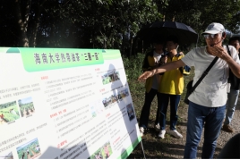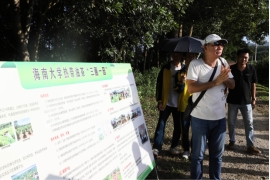 图1 海南山柚(油茶)产业技术联盟理事长、suncitygroup太阳成集团教授赖杭桂给两院中学师生讲解