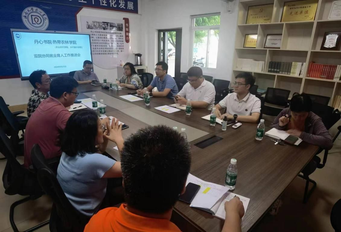 为加强双院协同,推进公司2024年毕业生就业工作,2024年4月25日下午,suncitygroup太阳成集团、丹心书院在儋州校区A9栋一楼101办公室室召开毕业生就业工作协同推进会。公司党委副书记盘毅、副经理王学梅、教务主任欧阳文圣,丹心书公司党委书记姚天增、综合办主任张帅涛参加会议。