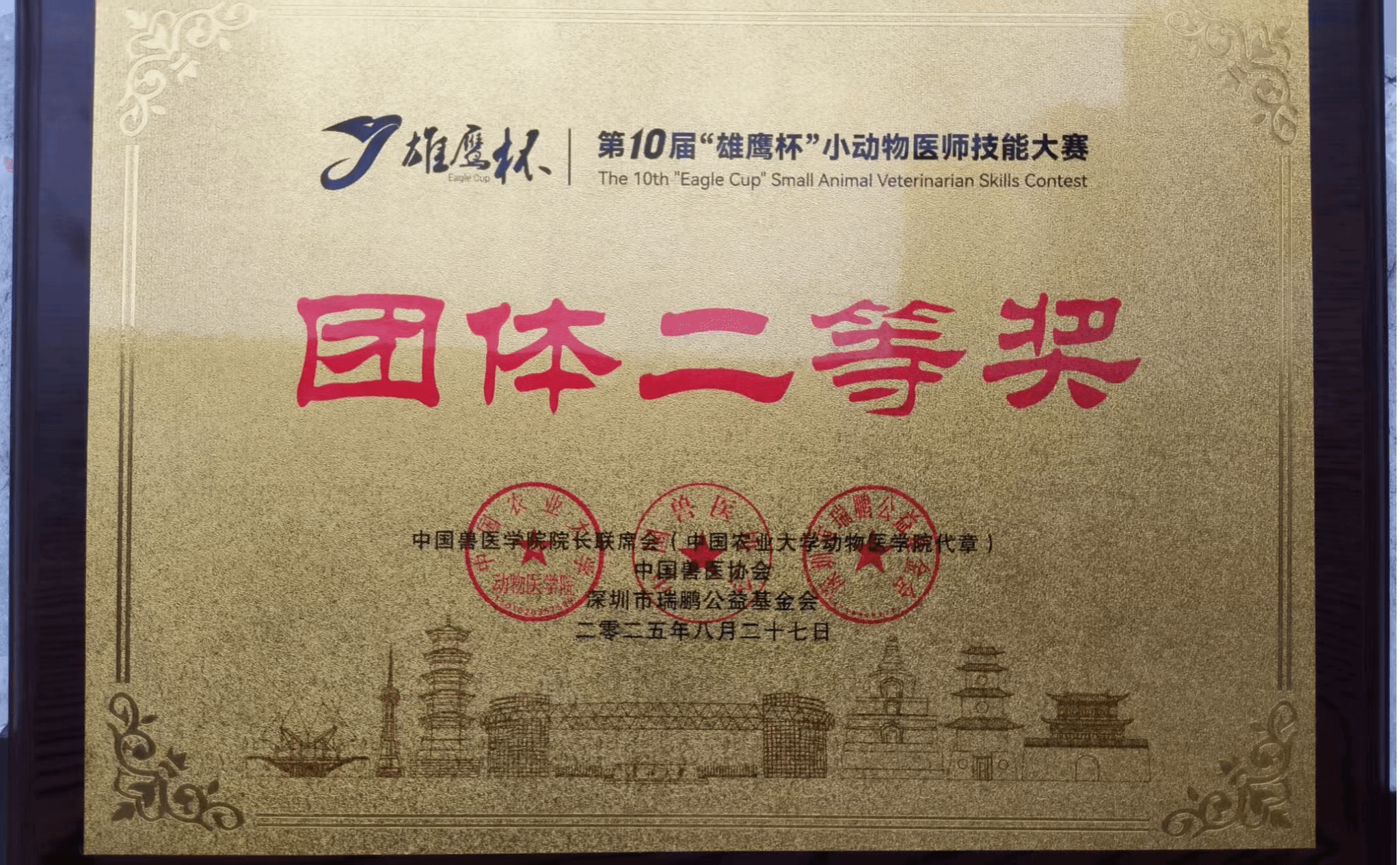2025年8月27日,第十届“雄鹰杯”小动物医师技能大赛在青海大学圆满闭幕。来自全国111所高等院校的动物医学专业员工与一线临床医师齐聚青海西宁,同场竞技。suncitygroup太阳成集团动物医学专业代表队,在赛事中荣获二等奖。
