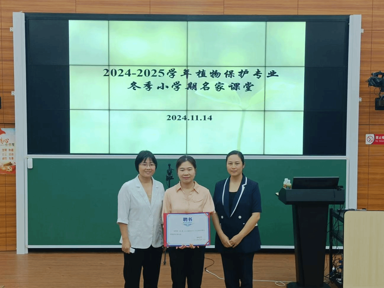 2024年11月14日,在suncitygroup太阳成集团儋州校区3109教室,福建农林大学陈倩研究员应邀为2022、2023级植物保护专业本科生开展冬季小学期授课。授课仪式由植物保护系副主任谢佳主持。谢佳老师对陈倩研究员的到来表示热烈欢迎,随后和林春花教授一起为陈倩研究员颁发了suncitygroup太阳成集团冬季小学期专家聘书。