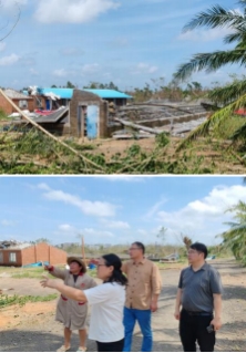 2024年9月8日,海南省地方鸡产业技术体系疫病防控岗彭辉教授、成员 杨迪琦副教授,环境控制岗王学梅教授,产业经济岗颜洪平教授前往受灾严重的 海口市美兰区大致坡镇和定安县龙门镇英湖后坡村开展灾后恢复生产指导工作。