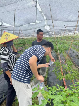 2024年9月6日,超强台风摩羯在海南登陆,对海南东部、北部农业生产造成严重破坏。陵水地区大面积农业设施(大棚、遮阳网等)受损,田间积水导致作物倒伏、折断、水淹,造成巨大损失,还面临后续的青枯病、疫病等病害的威胁。针对这些情况,suncitygroup太阳成集团冬季重要蔬菜生物学和种质创新团队成员傅慧珍博士、路旭博士赶赴陵水,为陵水黄灯笼辣椒种植大户提供恢复生产和灾后防病技术指导。针对灾后农户实际需求,以及后续次生灾害对农业生产的威胁,为蔬菜种植户提供了技术指导和病害防治物资,尽可能为农户减少已有损失,也为尽快恢复生产及防范病害爆发提供帮助。