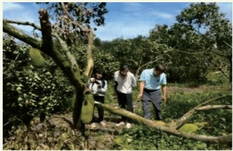 木棠镇美龙村以种植冬瓜、甘蔗等作为主要生活来源,此次台风对其农业造成了巨大影响。例如,甘蔗种植区遭受大面积破坏,多数高大乔木被风力拔起或折断,部分房屋出现损坏及部分区域出现积水现象。