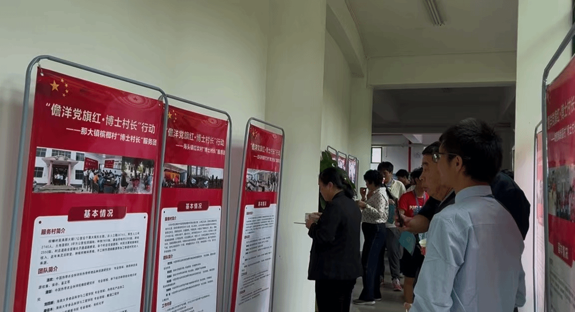 在论坛开展过程中,为了进一步扩大行动影响力,吸引更多力量参与,儋州市乡村振兴研究院制作了《“儋洋党旗红·博士村长”行动宣传册》和 20 个“博士村长”服务团工作风采及成果的宣传展架。详细展示了“博士村长”深入乡村基层后的工作内容、帮扶成果以及乡村发生的巨大变化,让更多人了解到“儋洋党旗红·博士村长”行动对儋州市乡村振兴的意义,有效提升了行动的知名度,呼吁更多人积极投入乡村振兴的伟大事业。