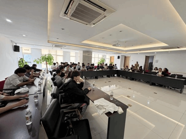 在第四站,师生们来到罗牛山产业园,受到了海南罗牛山肉类食品有限公司总经理付永山的热情接待。付永山总经理详细讲解了生产线设备、屠宰加工工艺流程及仓储运输管理等环节,展示了现代化肉类加工的高效与科学。在参观过程中,同学们直观感受到行业先进技术的应用与专业的严谨性。此外,企业还特别安排了产品品鉴环节,让同学们在实践中体验到动物科学对生活品质的直接贡献。